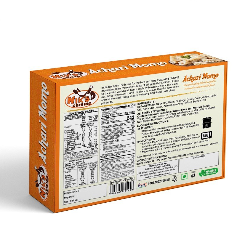 Details: INGREDIENTS :Refined Wheat Flour, R.O. Water, Cabbage, Carrot, Onion, Ginger, Garlic, Salt, Coriander Leaves, Achari Seasoning, Refined Soybean Oil.