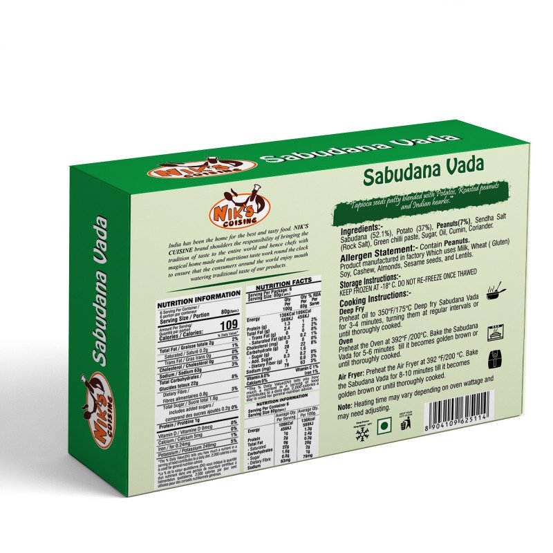 Details: Ingredients:- Sabudana (52.1%), Potato (37%), Peanuts(7%), Sendha Salt (Rock Salt), Green chilli paste, Sugar, Oil, Cumin, Coriander.