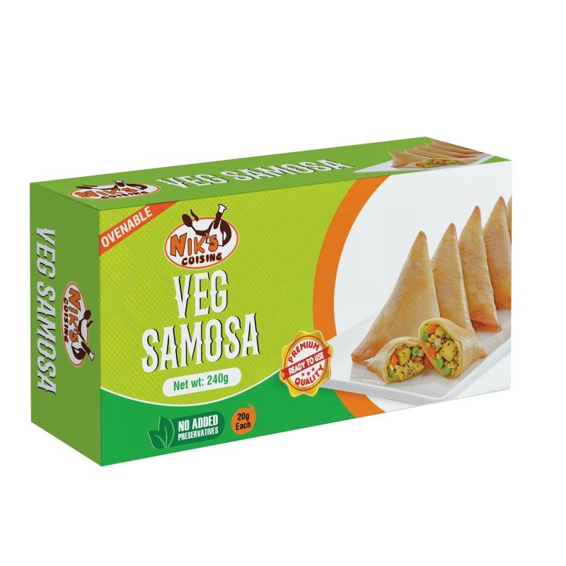 Details: Ingredients:- Stuffing: Potato, Carrot, Green Peas, Onion, Cauliflower, Vegetable Oil, Salt, Lemon Juice, Garlic, Ginger, Bay Leaves Powder, Cinnamon, Cardamom, Clove, Cumin Pastry: Refined Wheat Flour, Vegetable Oil, Salt